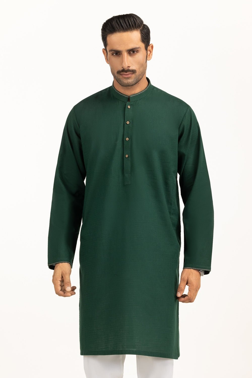 Elevate your festive look with this impeccably designed styling kurta. Details: Embroidered Kurta Seasonality: Summer Occasion: Eastern Wear Color: Green Composition: 100% Cotton